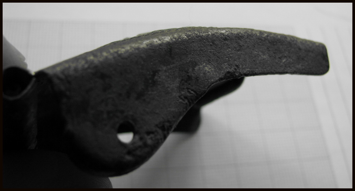 Der Helm wurde zum Schluss dazu benutzt Verletzten Wasser aus einer nahegelegenen Wasserstelle zu bringen. Deswegen fehlt auch das Innenfutter.